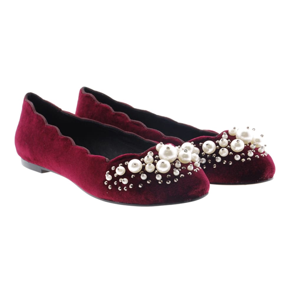 Disponibles en tres colores burdeos, negro o cuero. Consejos de talla: Calzan el número. Para tus looks más invernales combina estas bailarinas velvet de última tendencia con vestidos y pantalones. Además el toque de las perlas le dará un aire más vestido a tus estilismos.
