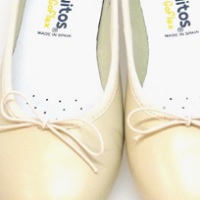Disponemos de tres modelos de bailarina Conguitos en piel de napa blanca, beig o azul electrico, adornadas con un lazito muy fino en la pala.