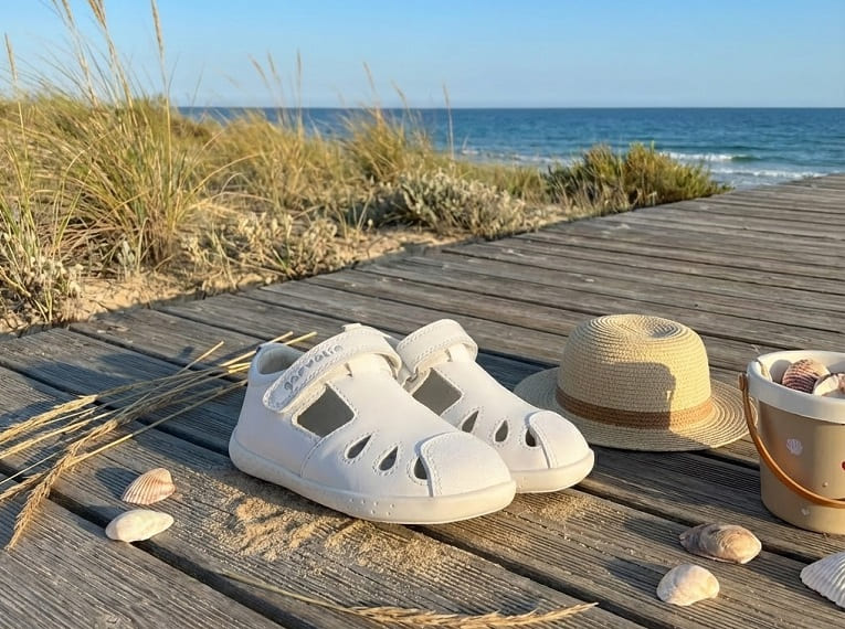Con el calor, el pie del bebé se dilata y suda más. El reto es encontrar un zapato fresco que sujete bien el pie. Evita a toda costa las chanclas de dedo o zuecos sueltos: obligan al bebé a encoger los dedos ("efecto garra") para no perder el zapato, alterando su pisada.