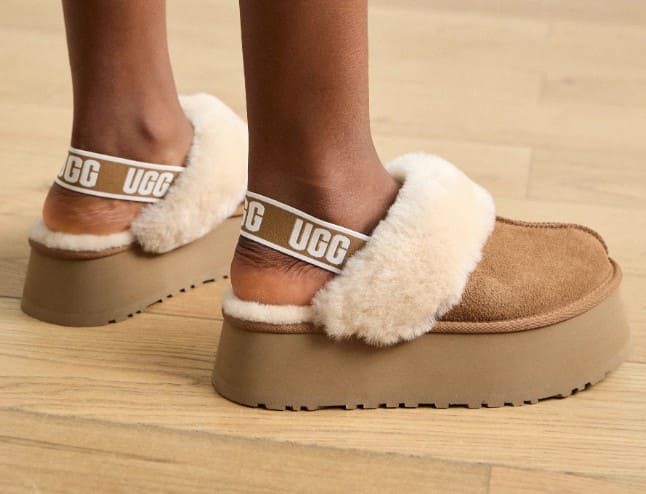 - Para un look atrevido y juvenil: El UGG Funkette es tu elección. Su tira con logo y su plataforma lo convierten en el centro de atención de cualquier outfit.