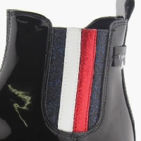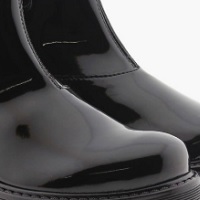 Botines Chelsea en piel charol negro con acabado brillante para dar un toque chic a cualqueira de tus outfis de invierno.