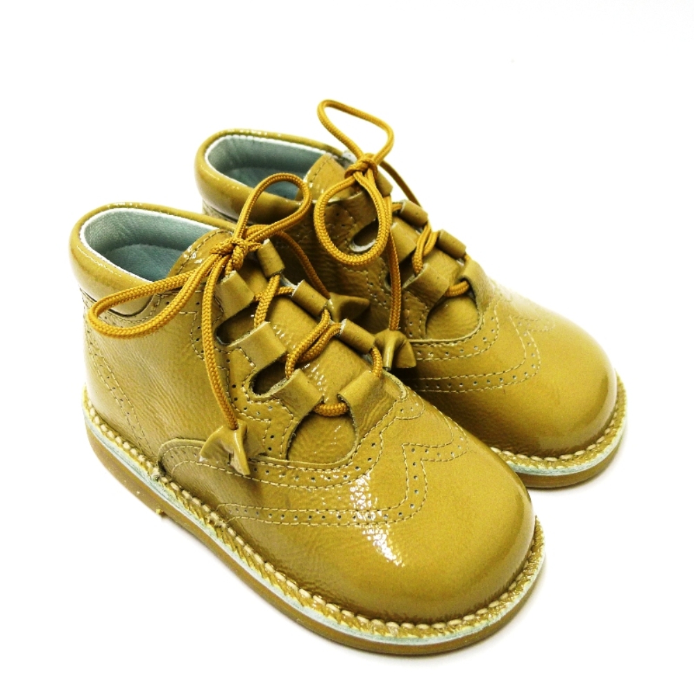Las botas galesas son un clásico para vestir para primeros pasos, pero además si tienen el toque de brillo de la piel de charol, aún son más especiales.