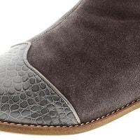 Piel de nobuck gris. Consejos de talla: Calzan la talla. Estos botines son ideles para pitillos y leggins. El toque del broche los hace diferentes y estilosos.