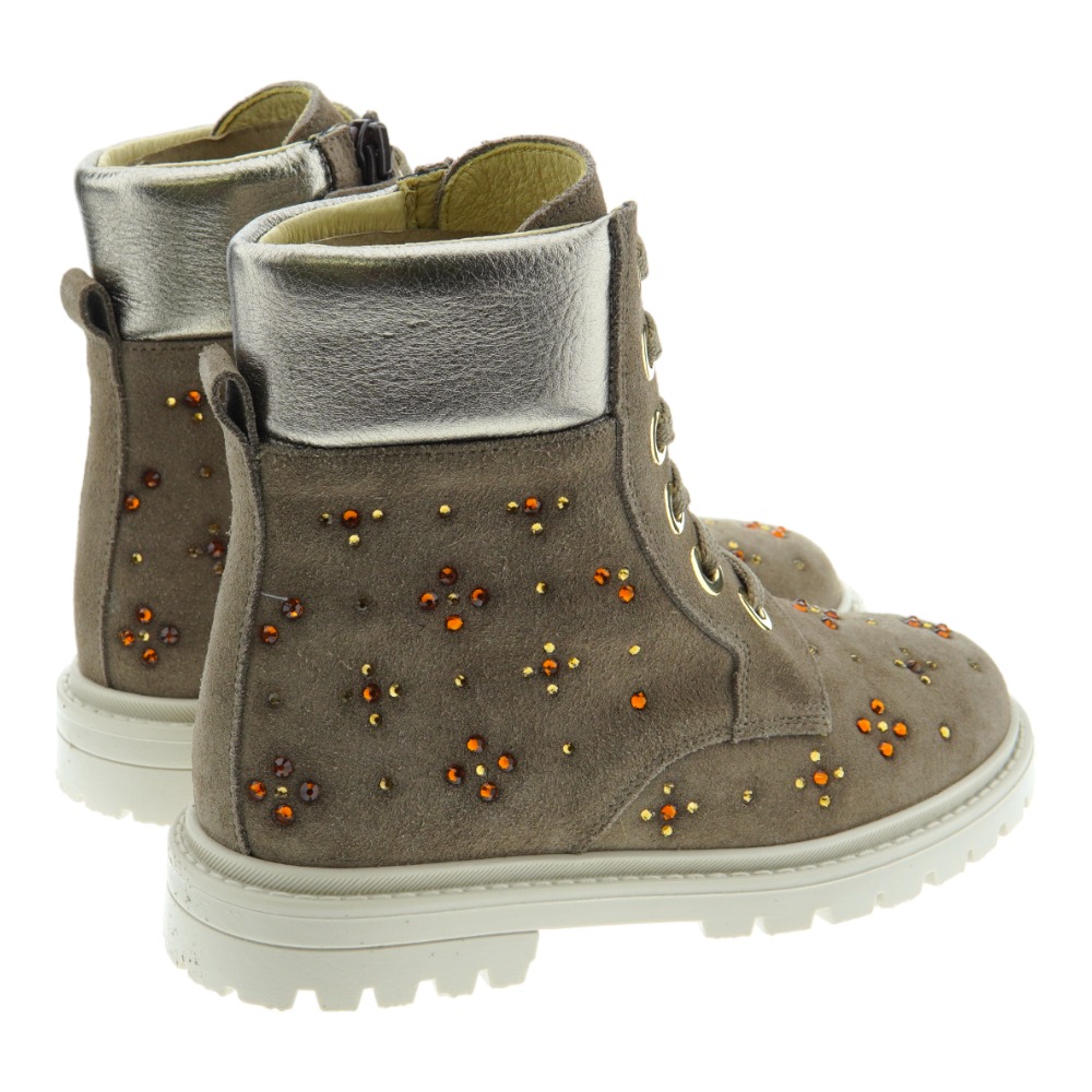 Piel de nobuck cuero. Consejos de talla: Calzan el número. Estos botines son los más combinables para looks de diario de estilo casual con leggins, tejanos o vestidos más informales. El detalle de las tachas los hace tan actuales y a la moda.