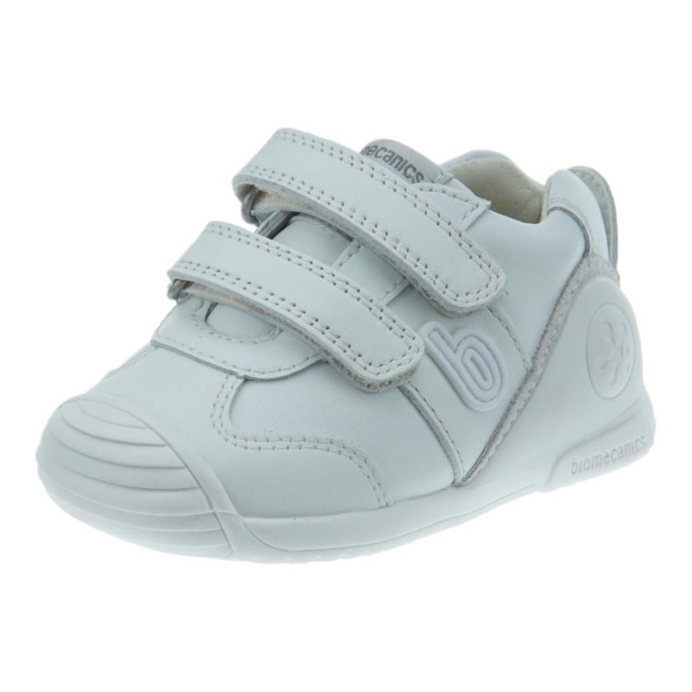 Piel napa blanco. Consejos de talla: Calzan el número. Elige este tipo de calzado sport para combinar con un chándal o con unos vaqueros a diario para ir a la guardería. El estilo deportivo es lo que mejor le va a combinar con la ropa de todos los días, además de ser unos zapatos adecuados para sus primeros pasos.