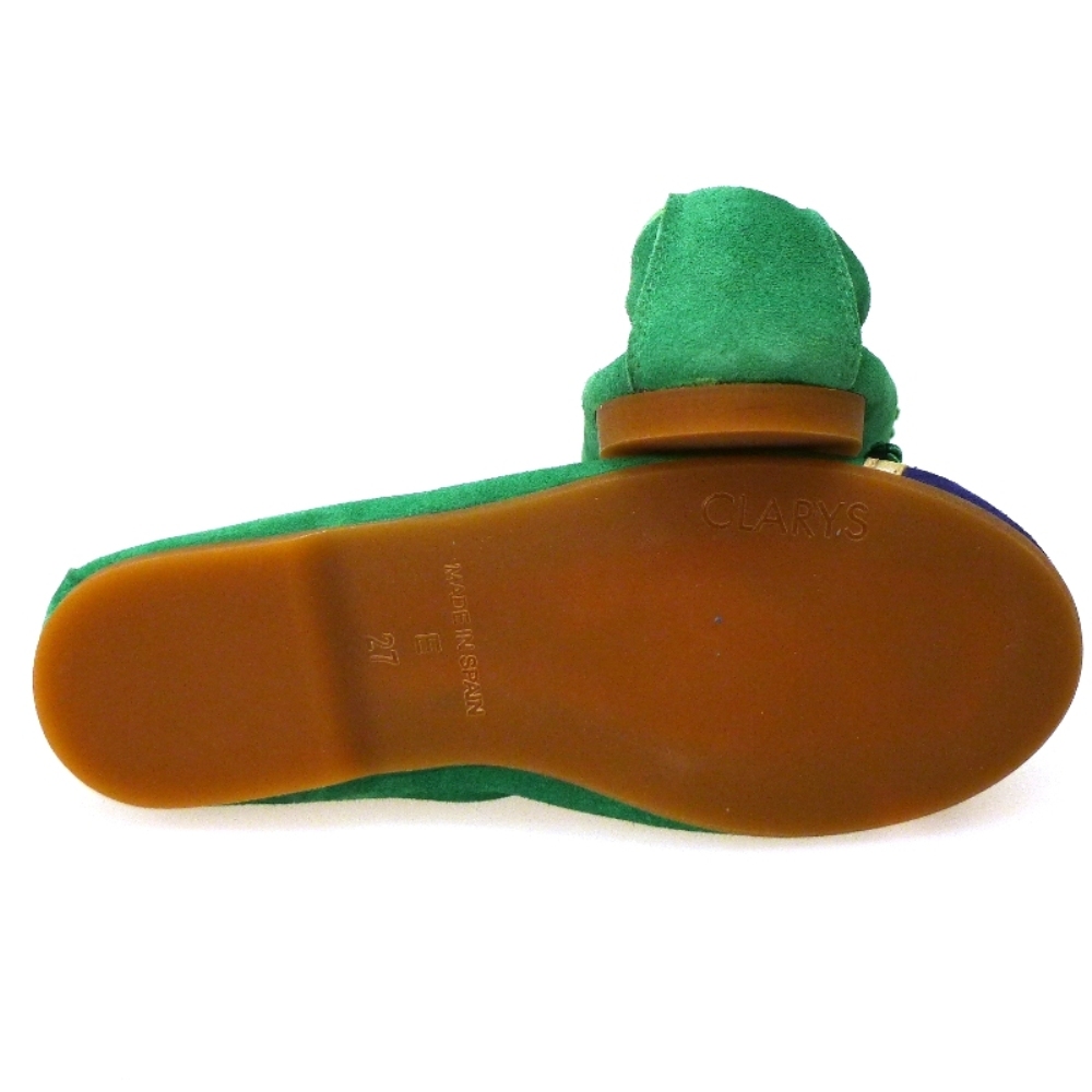 Disponible en diferenes colores, piel nobuck verde con puntera en azul y tira en oro y piel nobuck fuxia con puntera en napa dorada.Consejos de talla: Calzan el número.Una manoletina que la podras llevar para vestir y para sport, Ideal para pies anchos o estrechos gracias a su elástico.