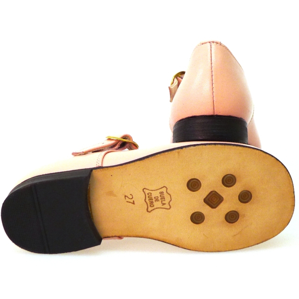 Piel napa rosa.Consejos de talla: Calzan el número.Un zapato mercedes clásico para combinar con los vestidos más especiales.