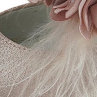 El detalle que llevan de adorno estos zapatos son unas flores con plumas, de quita y pon, que se ponen con elásticos en la tira del empeine.
