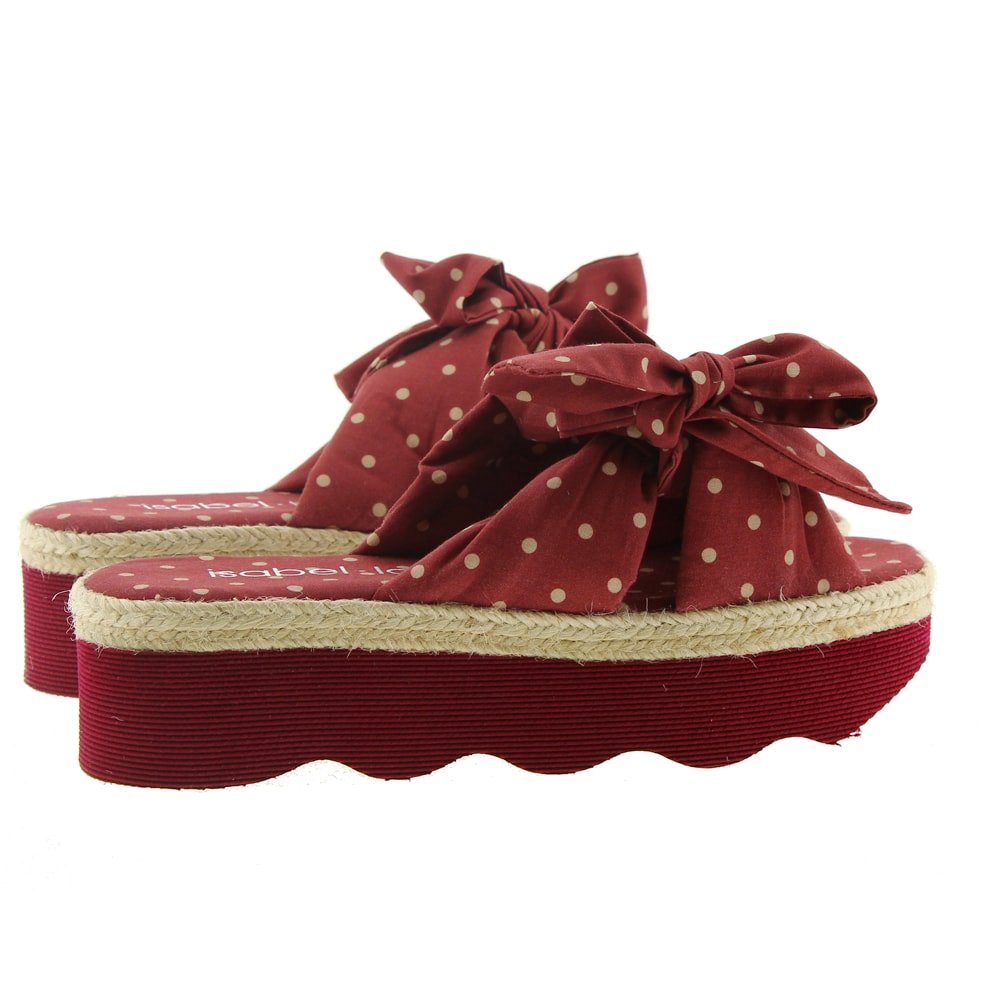 Las sandalias tipo pala son muy cómodas y prácticas para todos los días. La marca ISABELLAS, ha lanzado esta pala de algodón con estampado de topos y un lazo. El interior es de algodón. La plataforma mide aproximadamente 4 cm.