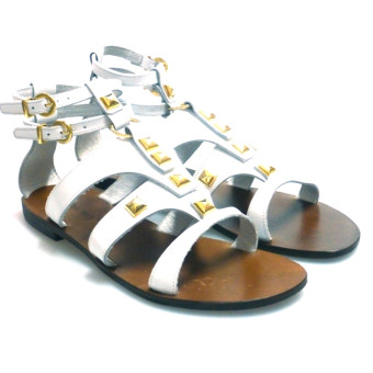 Piel napa blanco con flecos en oro. Consejos de talla: Calzan el número. Si buscas una sandalia cómoda para ir a trabajar y poder combinar con vestidos vaporosos o jeans, este modelo está pensado para ti.
