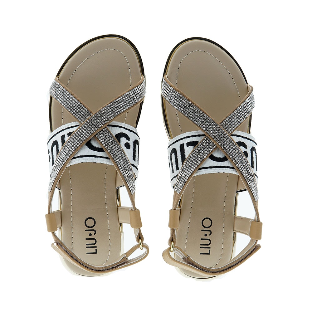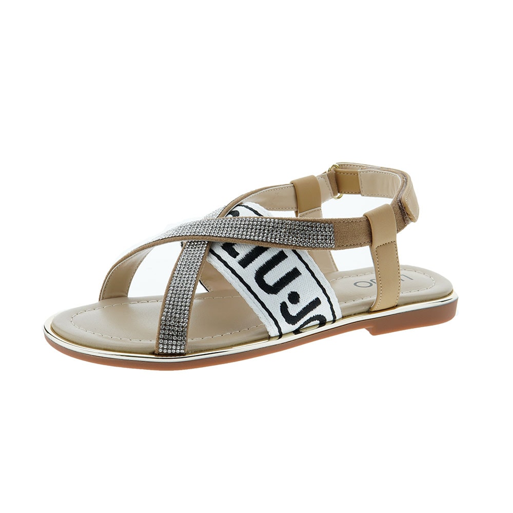Esta sandalia lleva diferentes tiras por la parte superior y una de ellas que va de un lado a otro, lleva el nombre de la marca bordado.